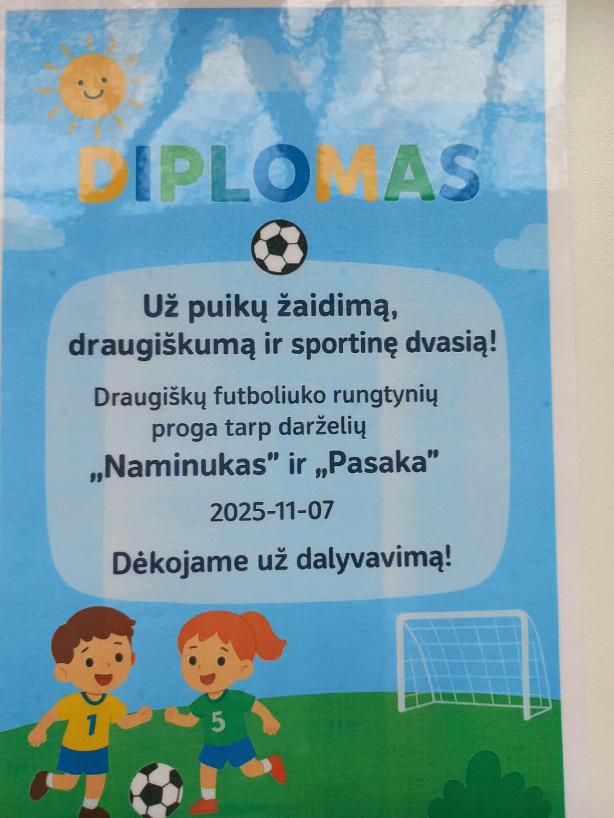 Šiandien - lapkričio 7-ąją - turėjome svečių iš Vilniaus lopšelio-darželio „Pasaka“. Vyko draugiškos futboliuko rungtynės tarp „Pelėdžiukų“ ir „Žirniukų“ grupių komandų. Vaikai smagiai pasimankštino, pajudėjo ir įmušė daug įvarčių. Sirgaliai negailėjo šūksnių ir palaikymo. Nugalėjo draugystė – visi futbolistai buvo apdovanoti diplomais ir patyrė daug smagių emocijų!⚽️⚽️⚽️