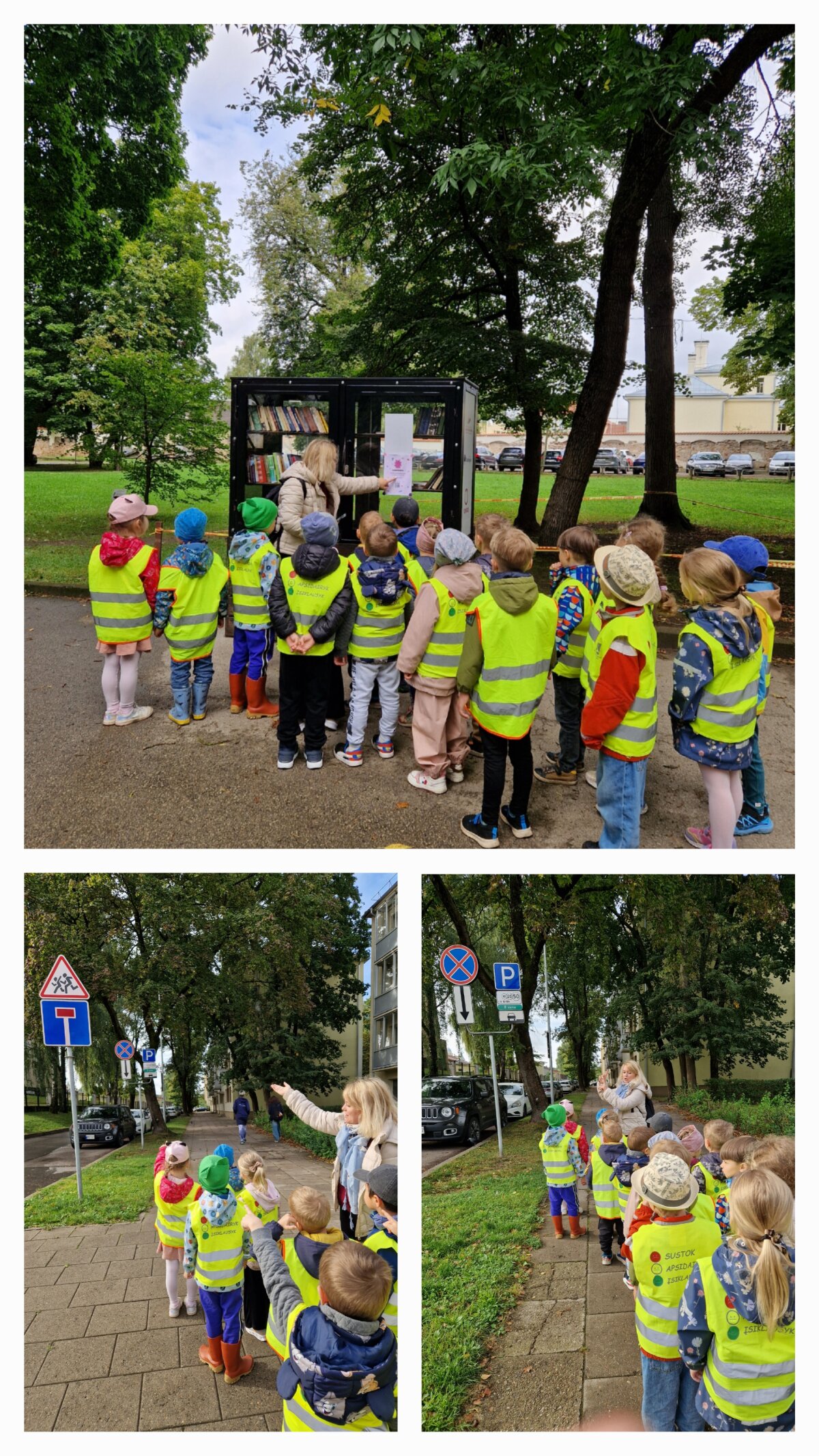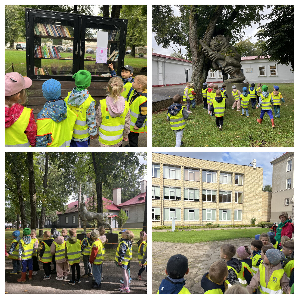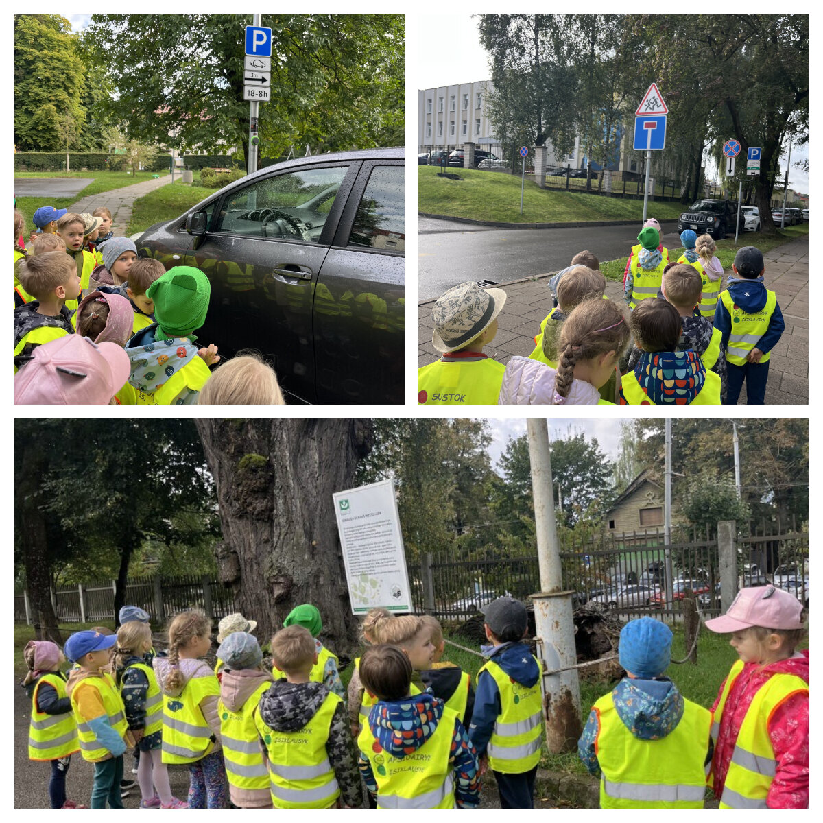 Rugsėjo 17-osios rytą „Drugelių“ grupės vaikai leidosi į pažintinę kelionę link Sapiegų rūmų parko, kurios metu ieškojo kelių eismo ženklų. Jie smalsiai žvalgėsi aplink, atidžiai tyrinėjo ženklus, aiškinosi, ką jie reiškia ir kam jie reikalingi. Vaikai sužinojo, kaip šie ženklai padeda užtikrinti saugumą, tvarką kelyje bei aplinkoje. Kelionės metu visi trumpam stabtelėjo prie lauko bibliotekėlės 📚, apžiūrėjo seniausią Vilniaus liepą 🌳 ir kelias skulptūras – linksmąją beždžionę 🐒 ir staugiantį geležinį vilką 🐺.
