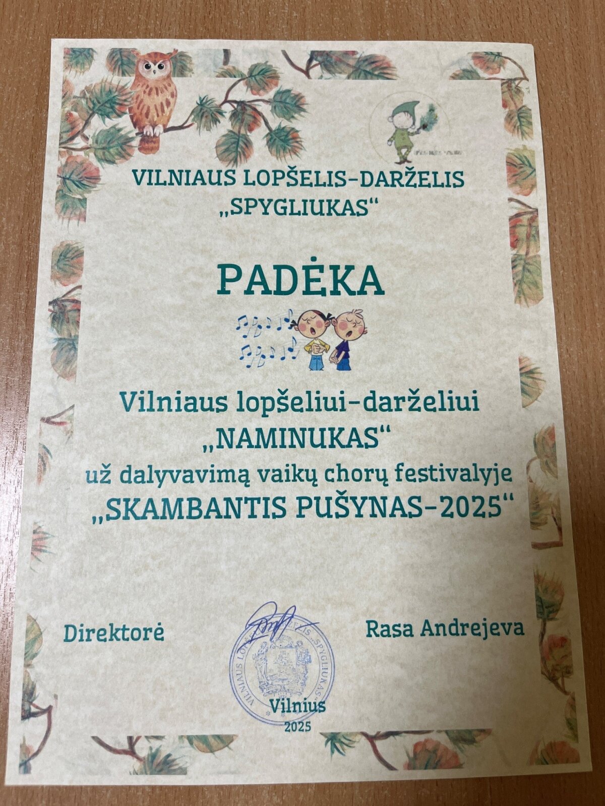 Spalio 8 d. „Drugelių“ grupės vaikai dalyvavo Vilniaus miesto ikimokyklinio ir priešmokyklinio ugdymo įstaigų vaikų chorų festivalyje „Skambantis pušynas – 2025“, vykusiame lopšelyje-darželyje „Spygliukas“.