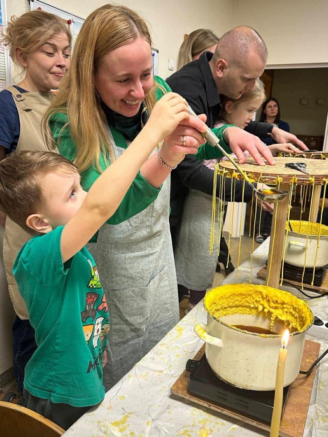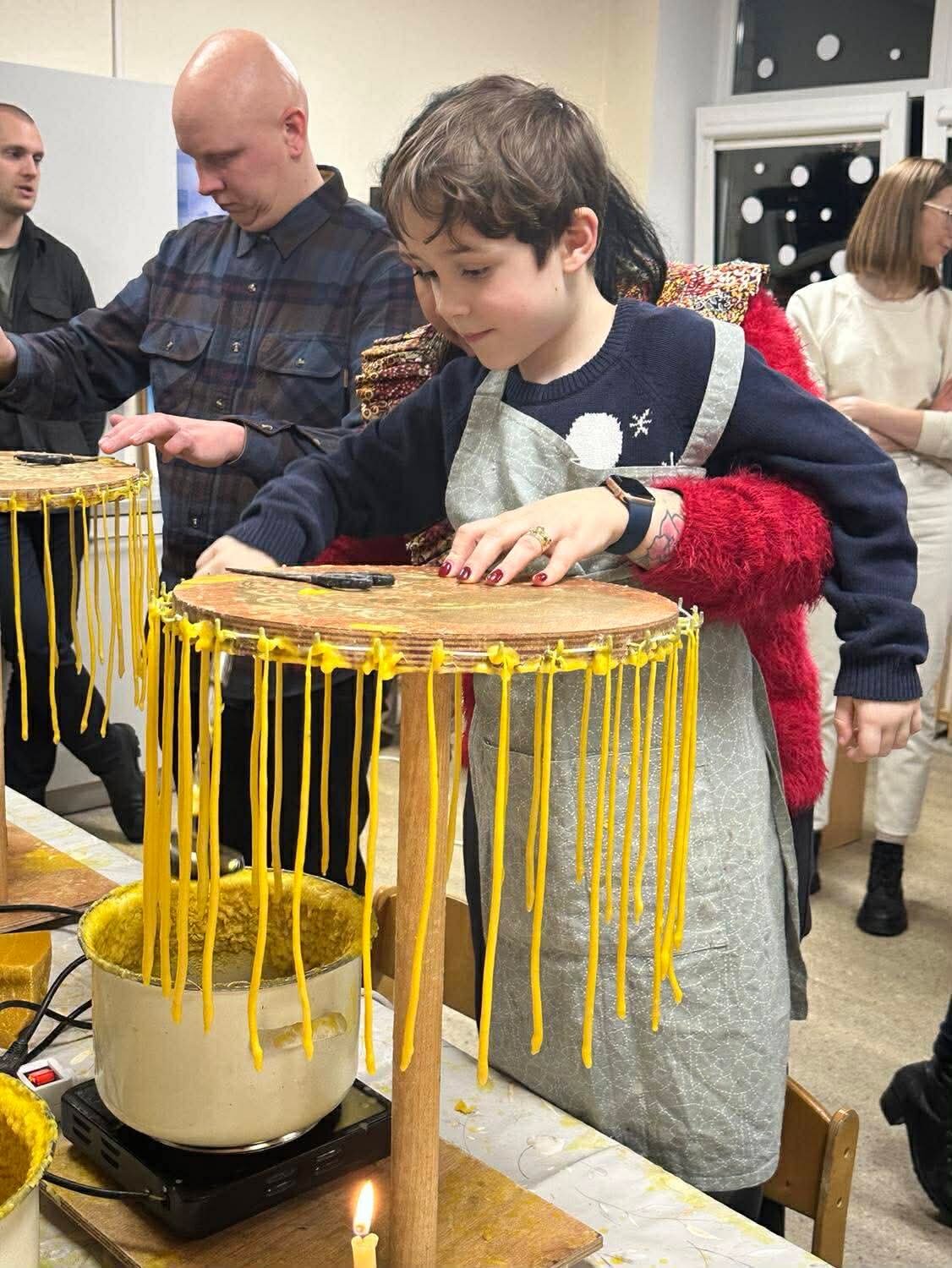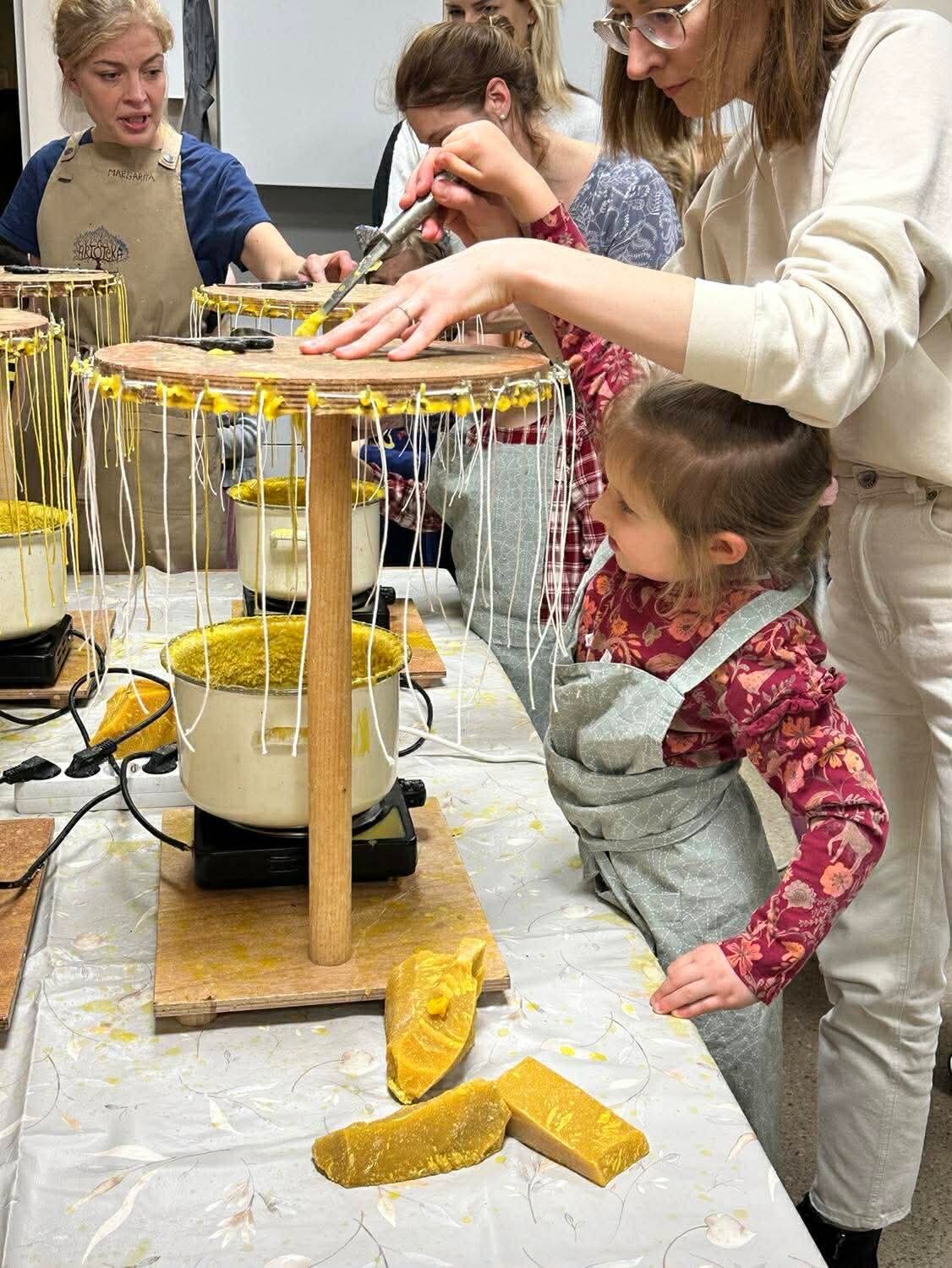 Kiekviena šeima pasikeisdama liejo vašką ir pagamino po 6 natūralaus bičių🐝 vaško žvakes. Kūrybinis procesas tapo bendrystės patirtimi. Veiklos metu vyko daug tarpusavio bendravimo, pasidalijimo atradimais ir džiaugsmo akimirkų. Tėvai ir vaikai dirbo komandoje, o jų kurtos žvakės tapo ne tik edukacijos rezultatu, bet ir maloniu bendro laiko praleidimu.