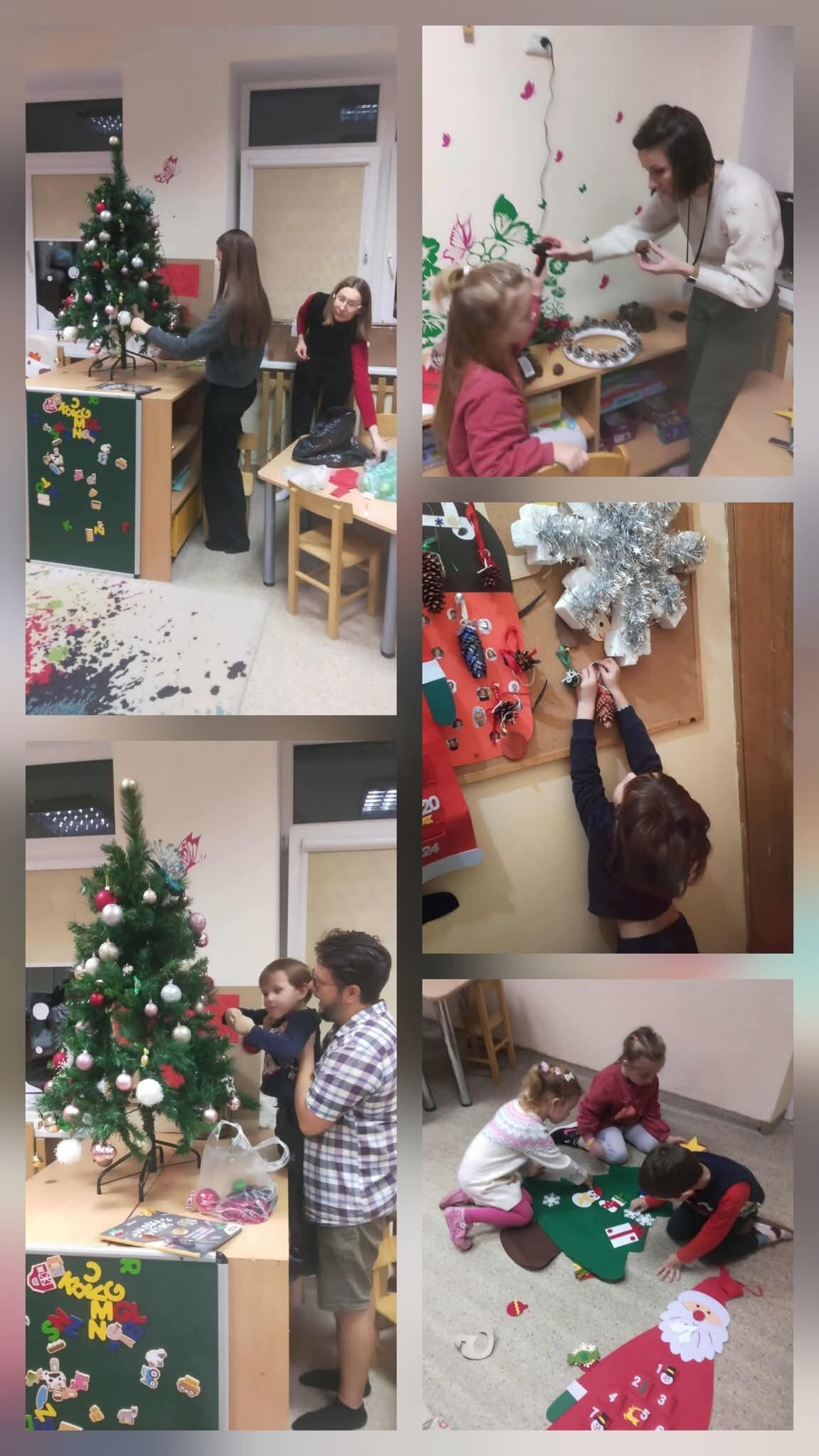 Tėveliai kartu su vaikais pasinėrė į šventinį šurmulį: mažosios vaikų rankytės gamino kalėdinius žaisliukus, mamos kartu kūrė eglutės papuošimus ir vainikus, o tėčiai ėmėsi rimtesnių darbų – kabino girliandas ir lemputes.