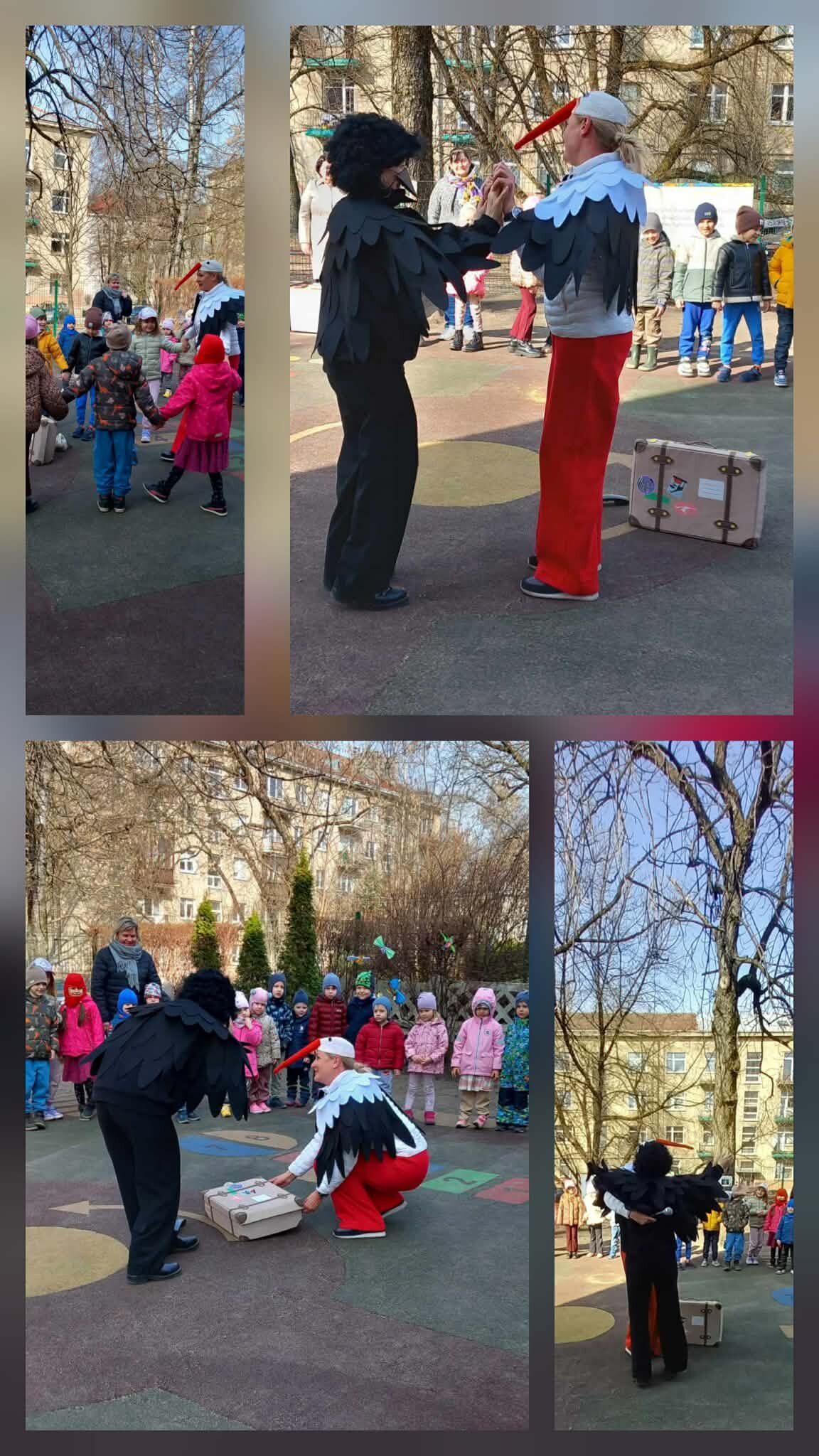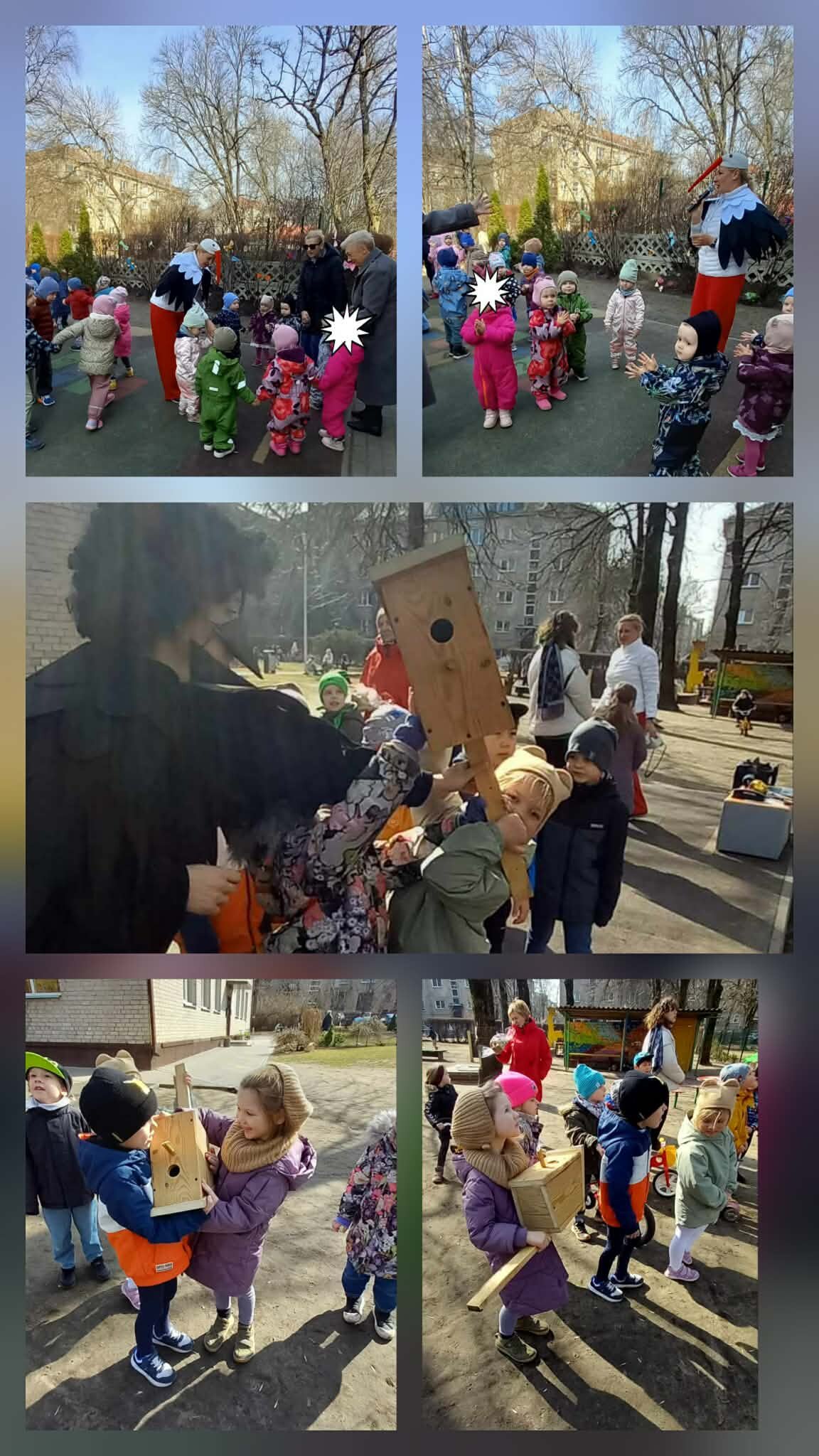 Pavasarį į Lietuvą sugrįžta sparnuočiai. Vis gausiau grįžta ir gandrai. Kovo 25-ąją švenčiamos Gandrinės - gandrų sugrįžimo diena. Šie didingi paukščiai laikomi tikrais pavasario pranašais. Gandras parneša pavasarį, šilumą ir naują gyvybę. Kai danguje išvystame sugrįžtantį gandrą, suprantame – bunda gamta, o kartu su ja atgyja ir visas pasaulis. Kad dar daugiau gyvybės ir linksmų paukštelių balsų skambėtų darželio kieme, vaikų padedami, iškėlėme inkilėlius. Sugrįžtančius sparnuočius pasitikome su džiaugsmu, šypsenomis ir žaismingu klegesiu.