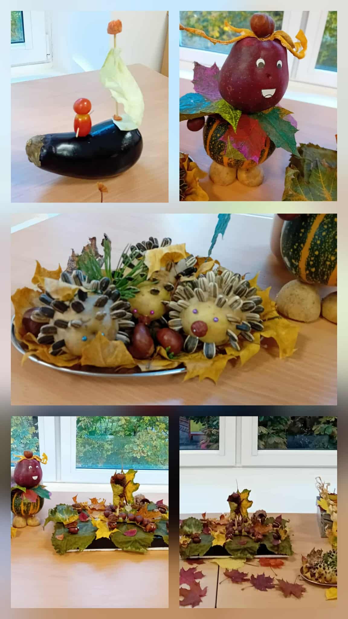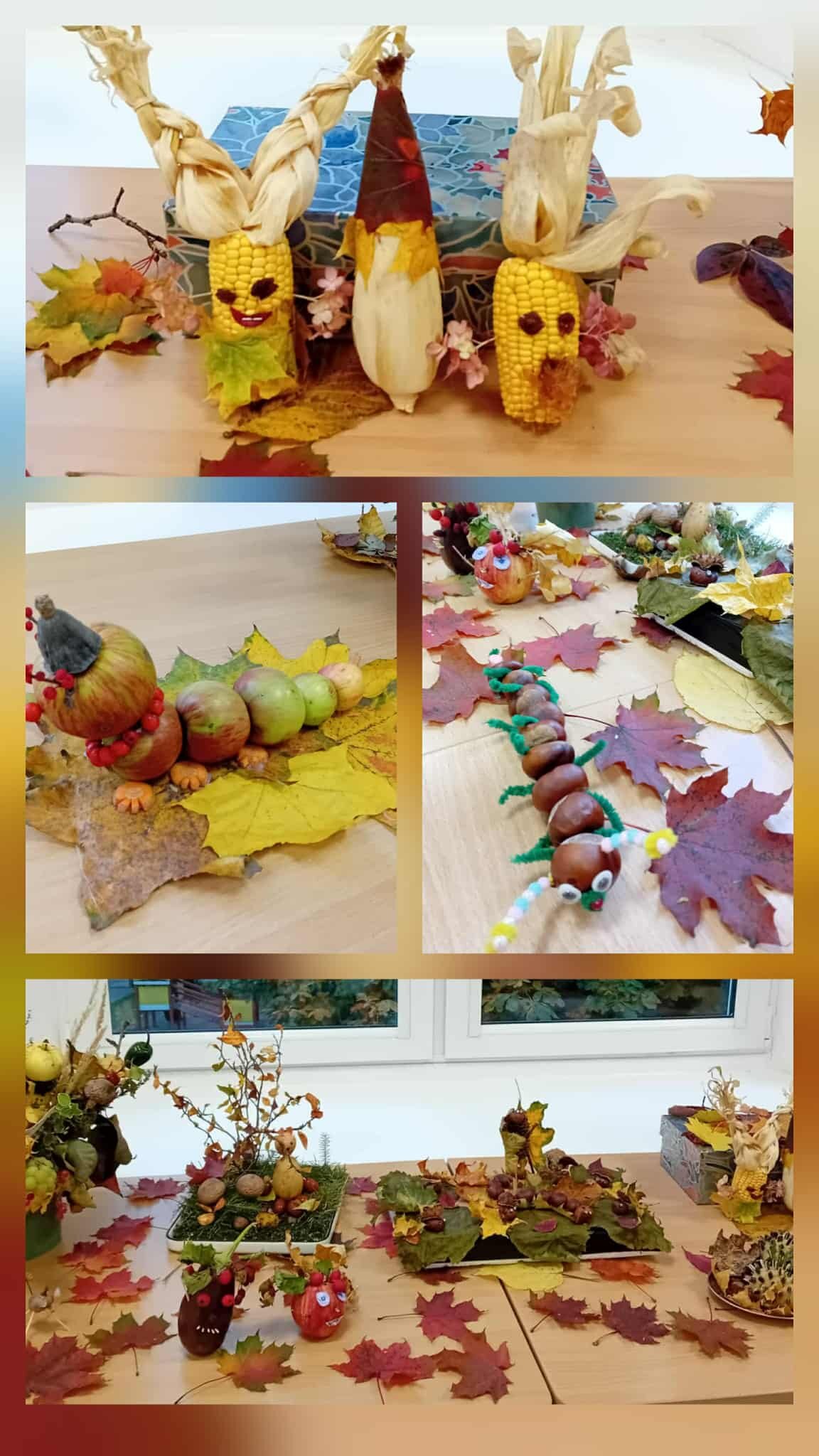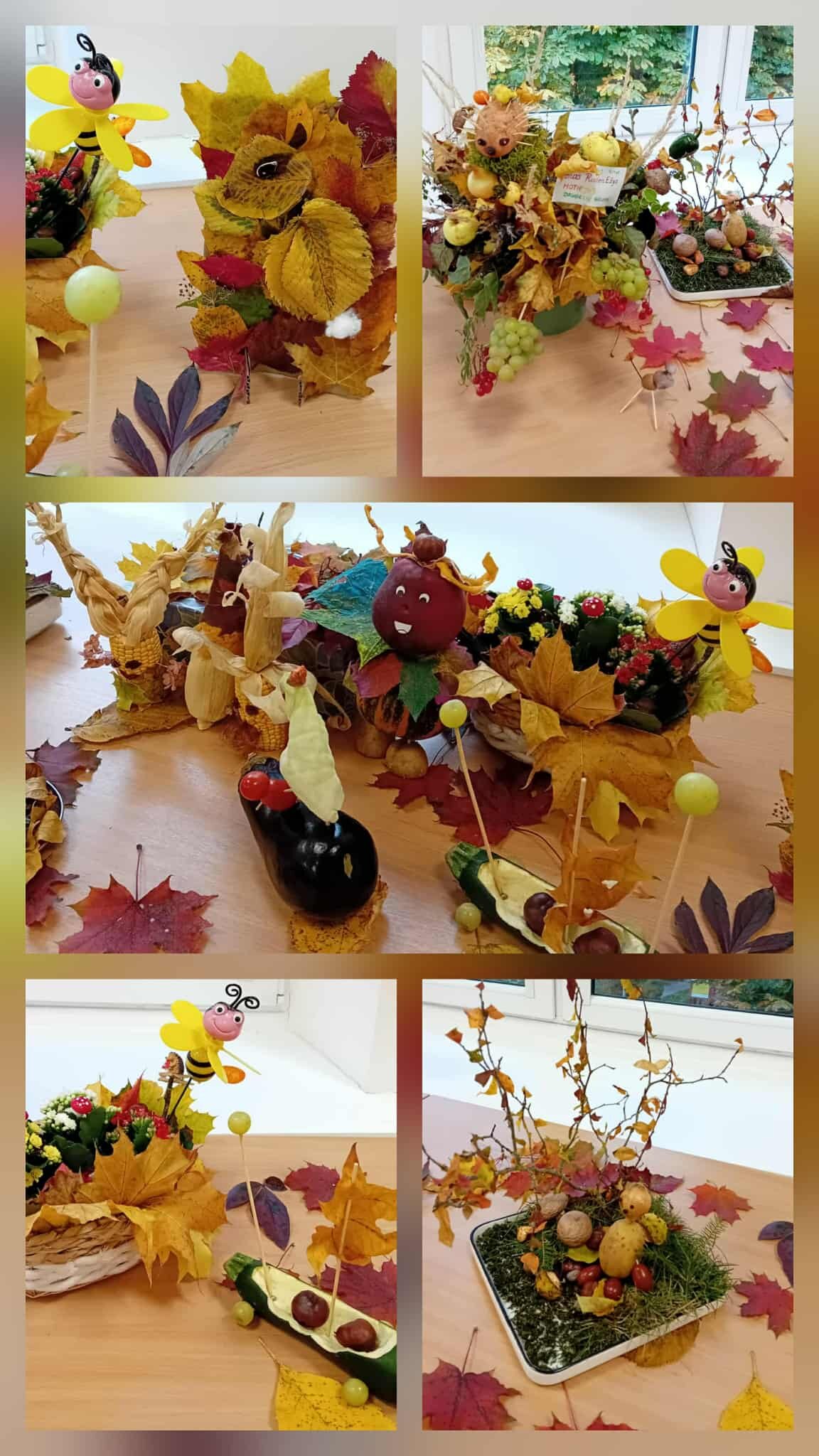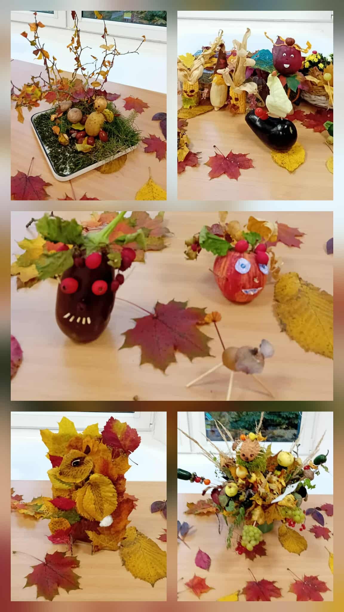 Smagiai pasilinksminę visi išsiskirstė po kūrybines dirbtuvėles ir užsiėme darbeliais iš rudeninės gamtinės medžiagos.
