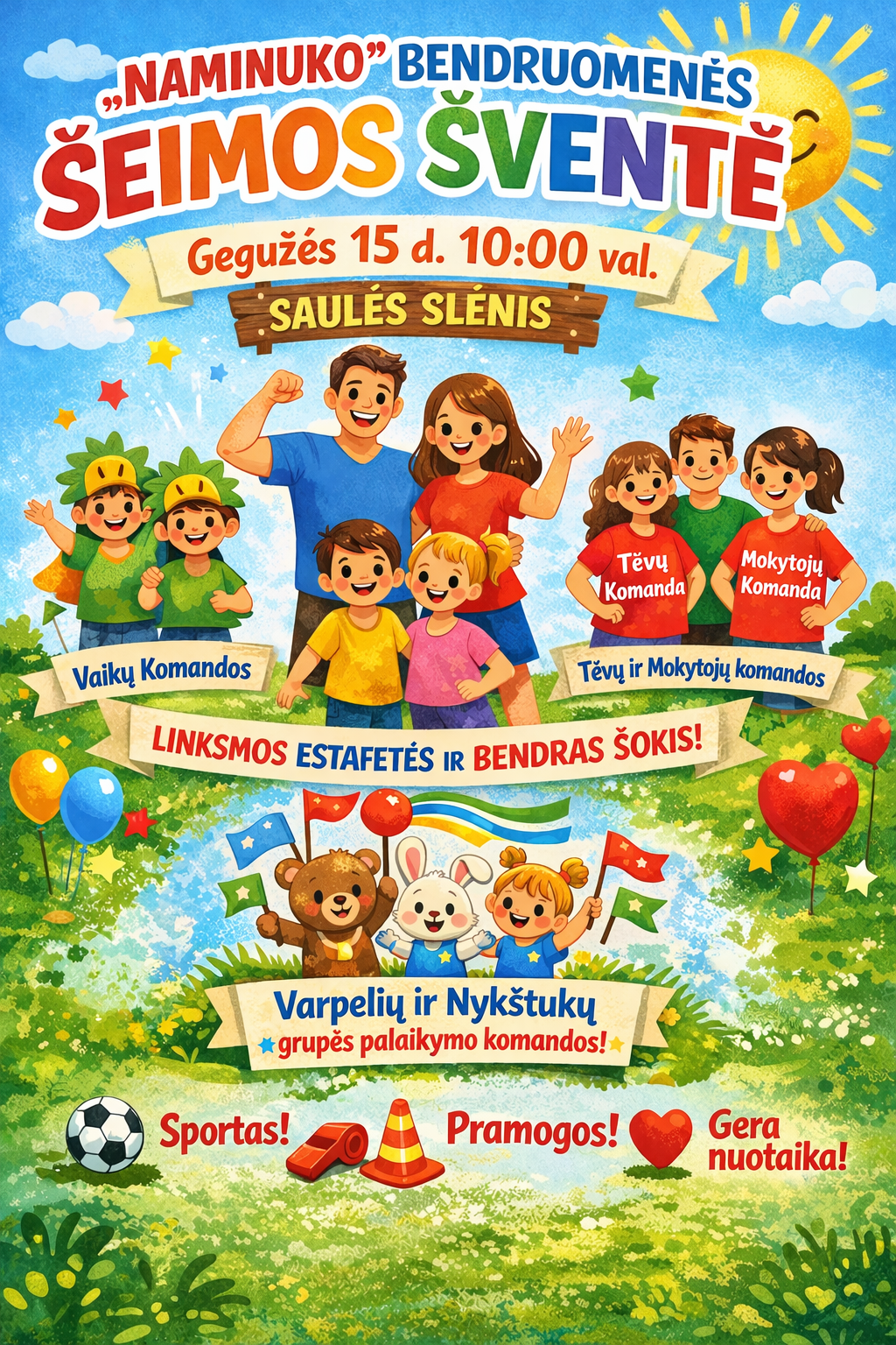 Kviečiame visus – vaikus, tėvelius, mokytojas ir kitus ,,Naminuko“ bendruomenės narius – gegužės 15 d. 10.00 val. į Saulės slėnį, kur vyks sportinė „Naminuko“ bendruomenės Šeimos šventė.
